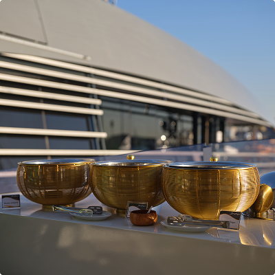 Chef-led gourmet dining, live cooking stations, and an open premium bar with signature cocktails.